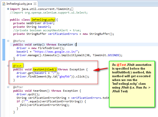 To start with lets use the following JUnit Annotations in our Selenium WebDriver Tests: